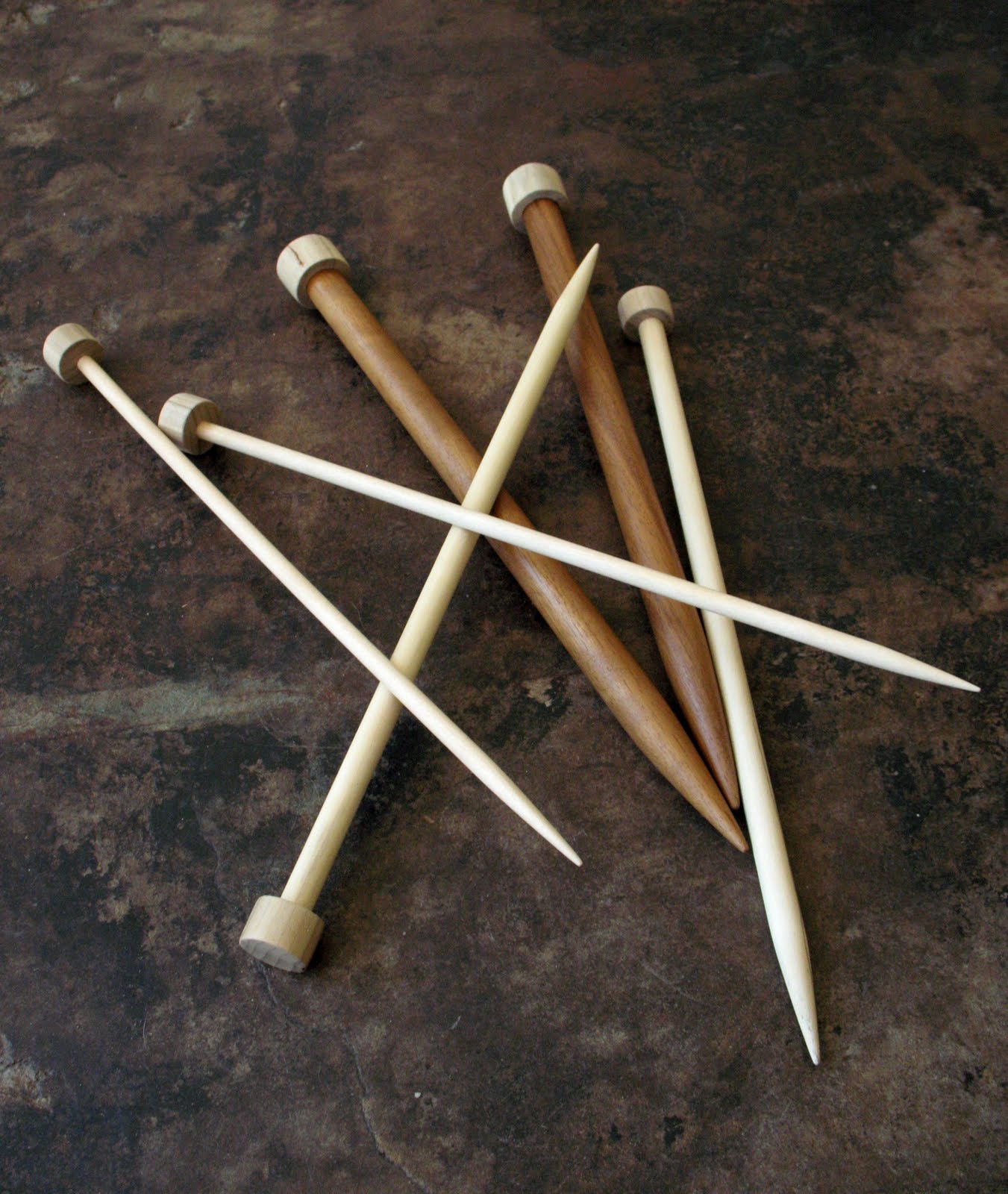Pictured above are handmade knitting needles, sizes 35, 17, 11 (oak and hardwood, $55/each).