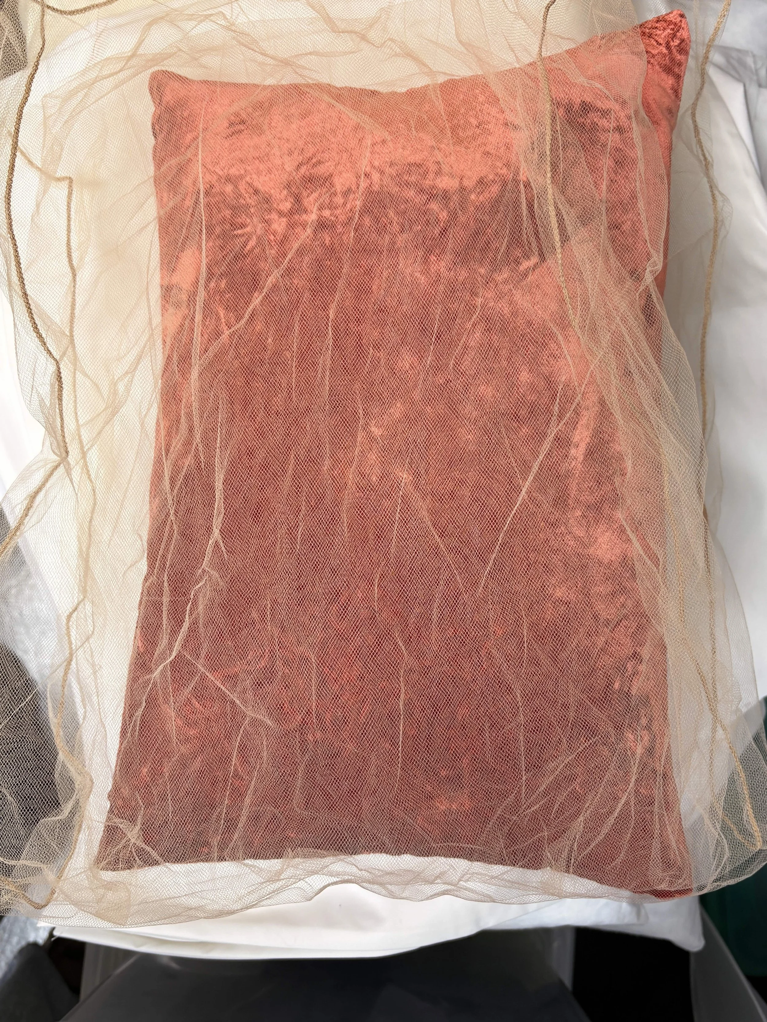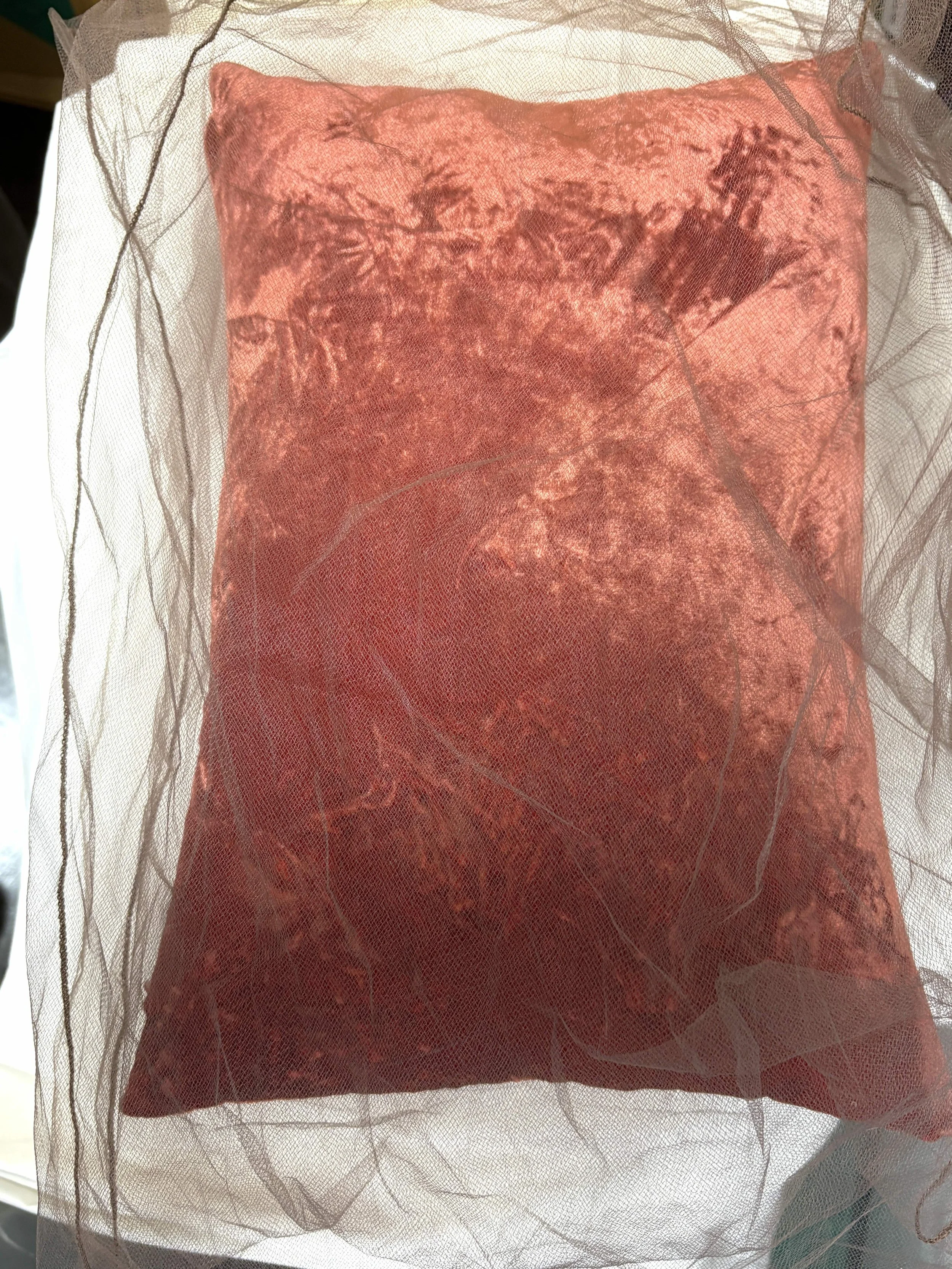 Peach nylon tulle outer case w/rust rayon velvet inner case