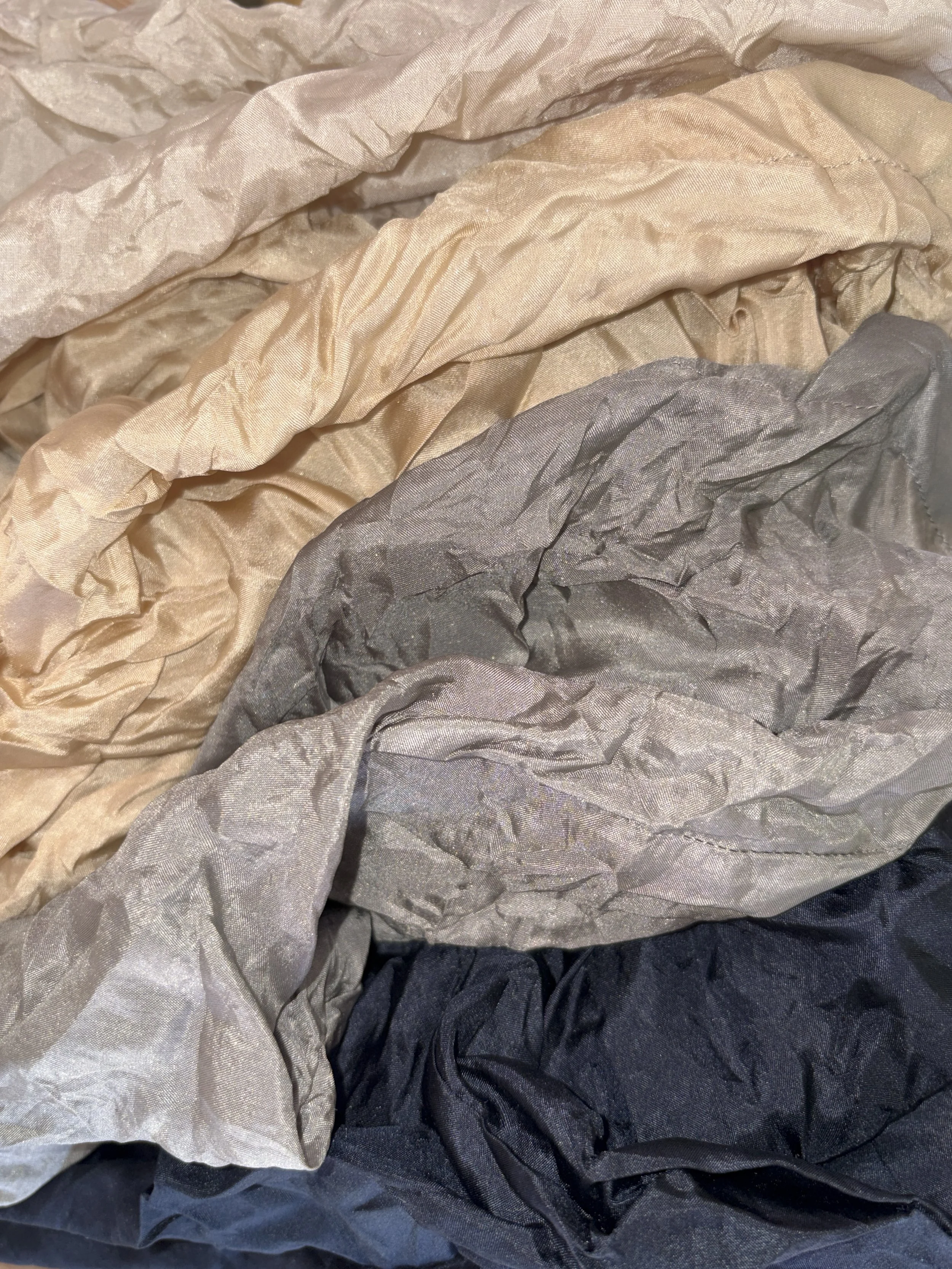 Sterling grey crushed habotai, 15 1/2” H x 15” W