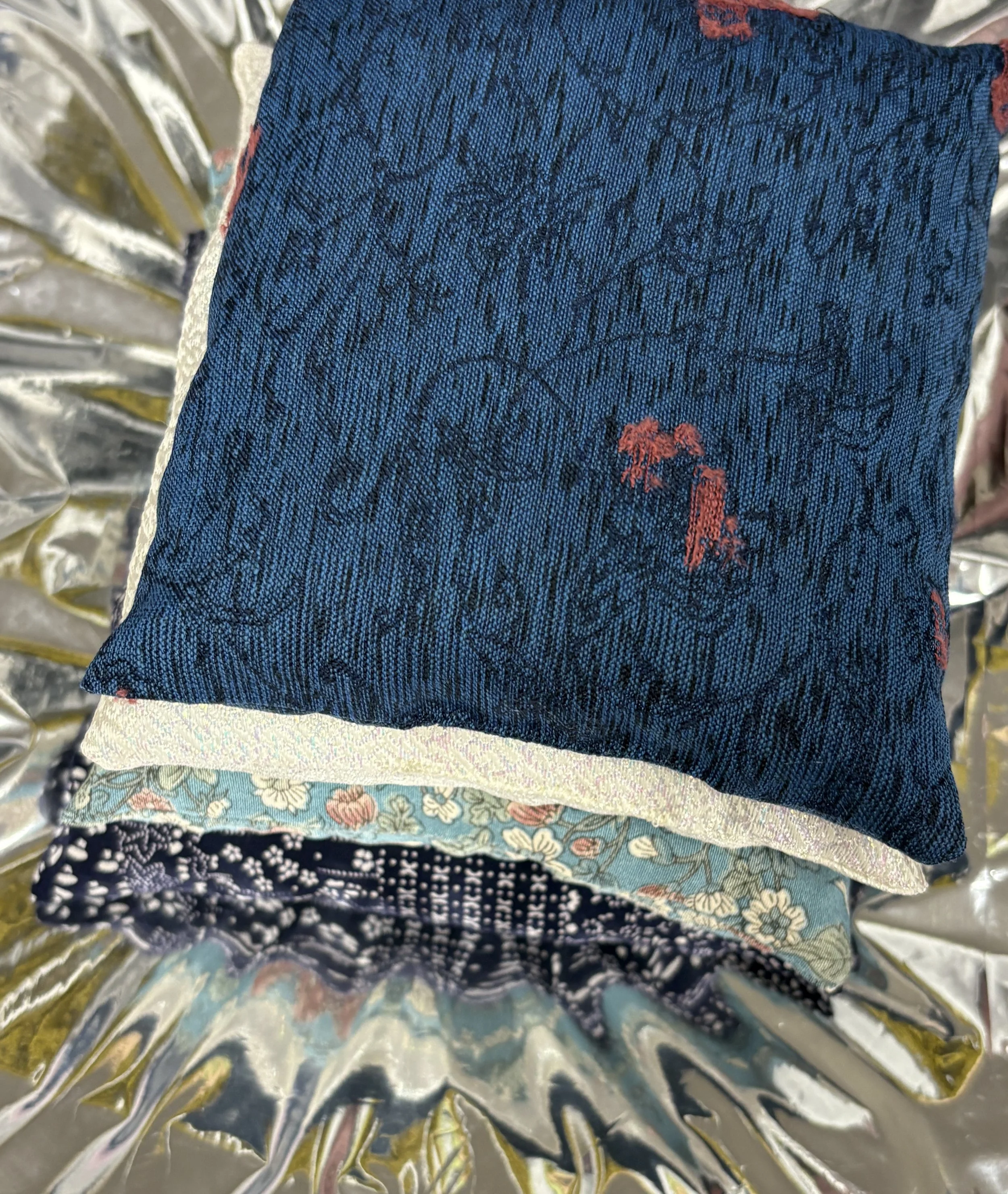 A sensory pillow, filled with jade and small river stones. A sound, a feeling. Rest on your chest, on the page of a book, on a paper. Made with vintage Japanese fabrics.