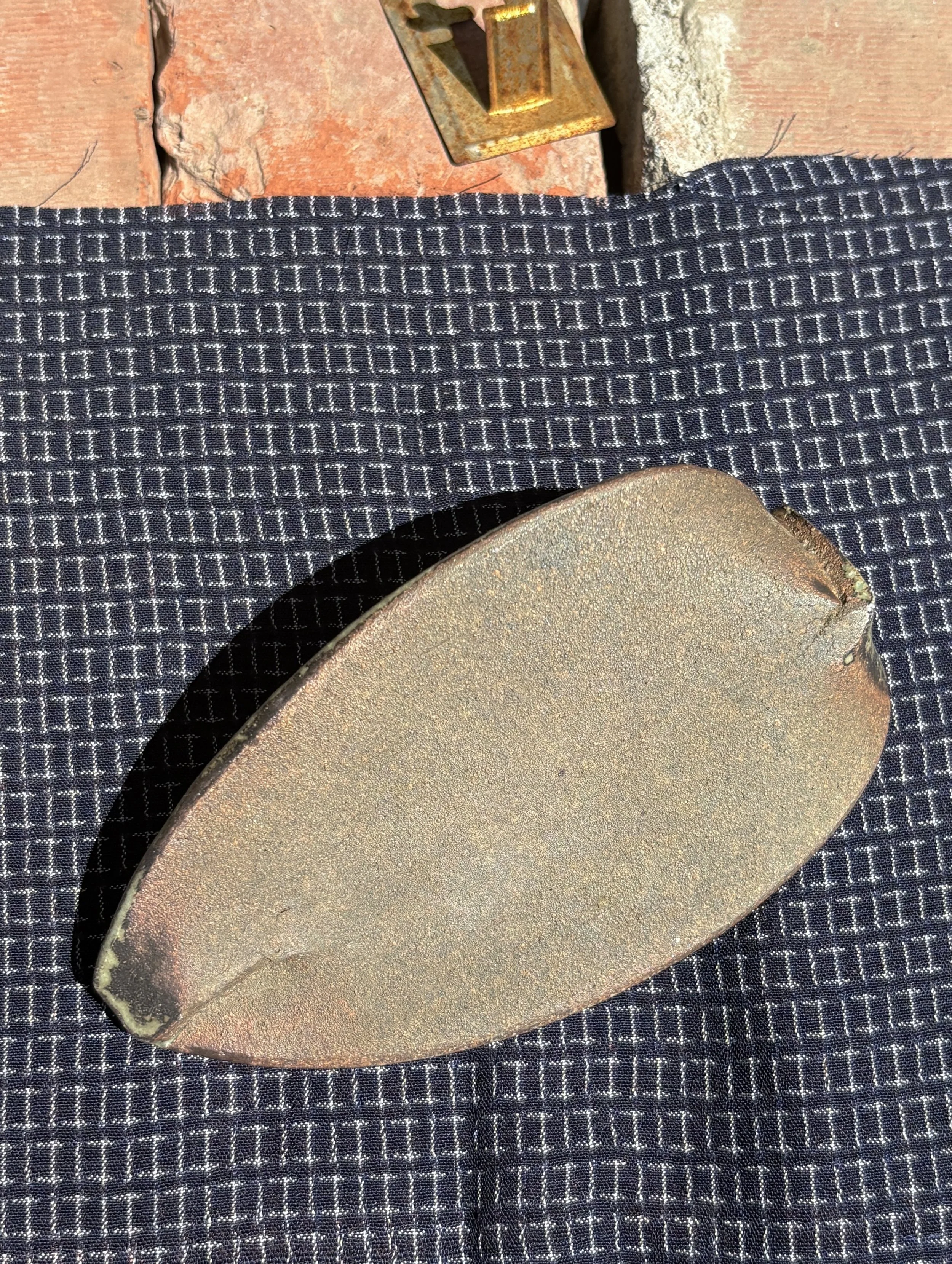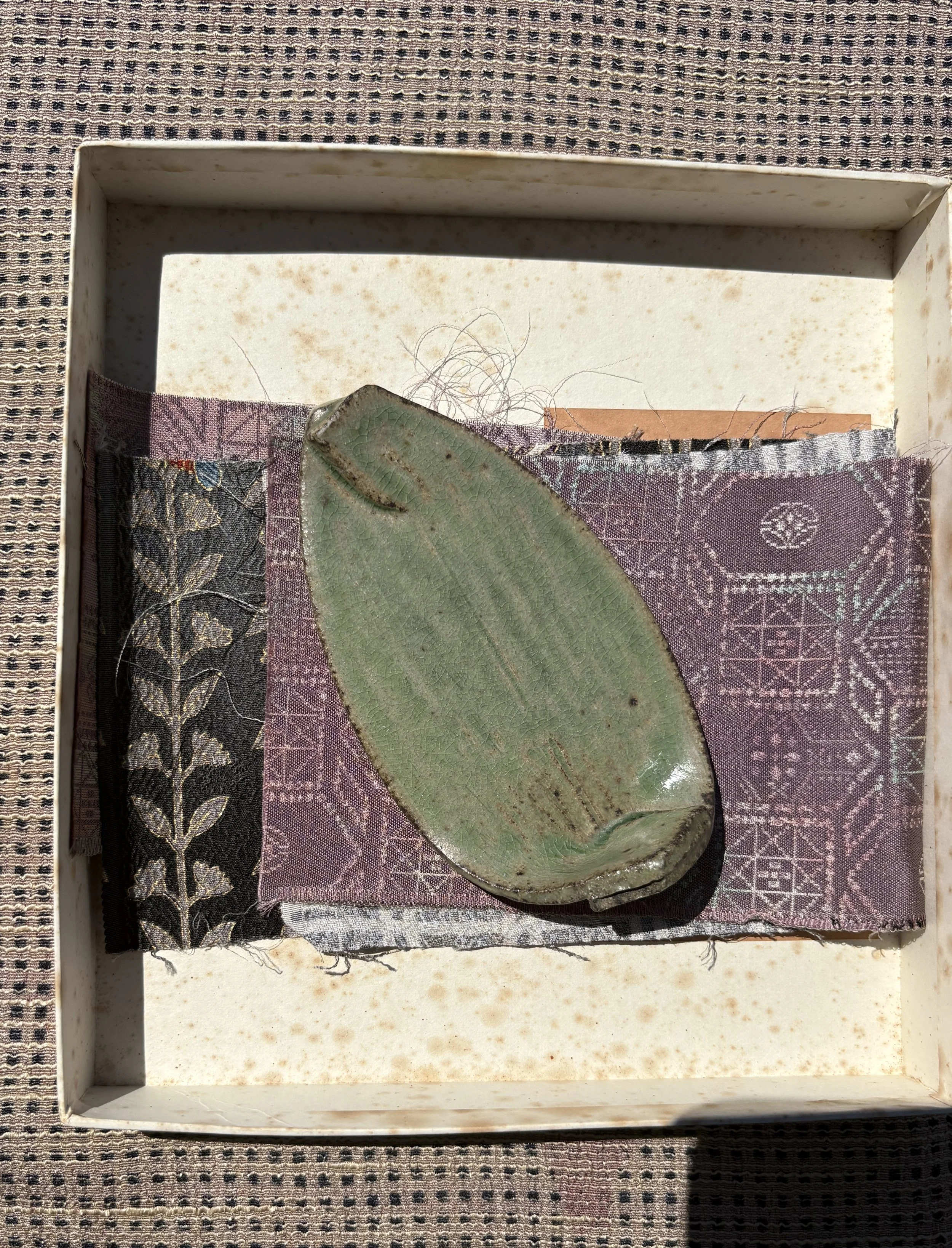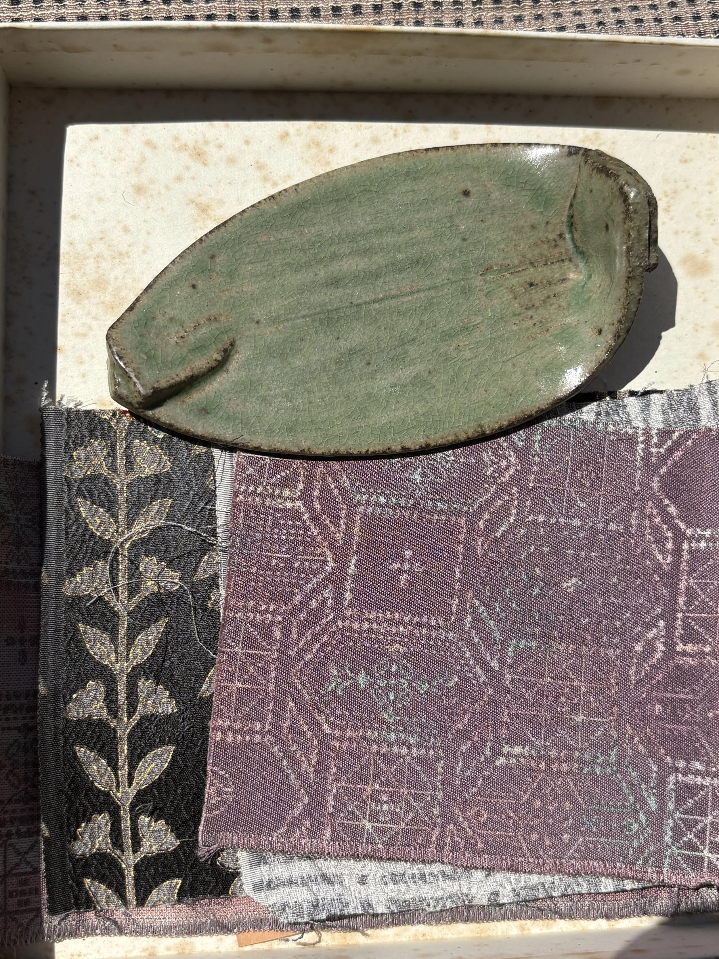 A beautiful interpretation of a folded leaf in ceramic form. A lifted end for holding. Captures a tea snack, a fruit, a candy. A pale green glaze in a perfect nature hue.